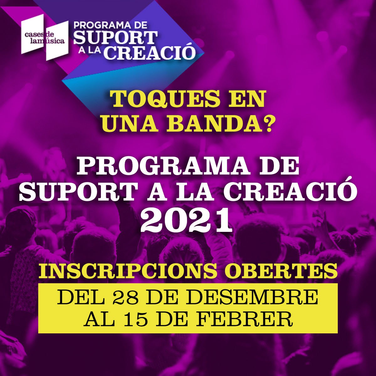 Cases de la Música anuncia el seu Programa de Suport a la Creació Musical 2021 dirigit a formacions musicals novells i emergents de tota Catalunya.