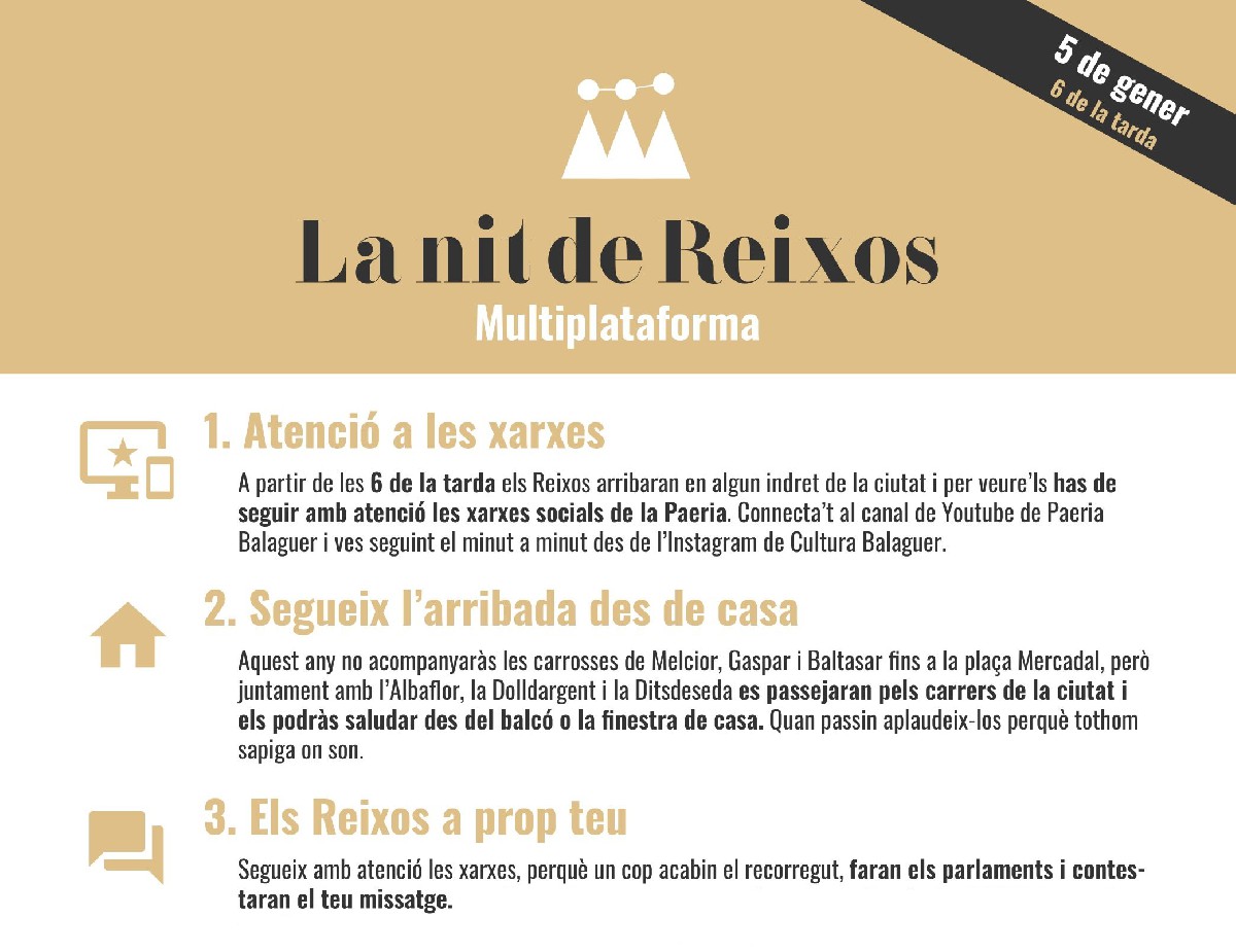 Tot a punt| Aquest dimarts a les 6 de la tarda arribaran els Reixos a Balaguer. Enguany la cavalcada a la ciutat serà virtual i es podrà seguir des de les xarxes socials i el canal de Youtube de la Paeria