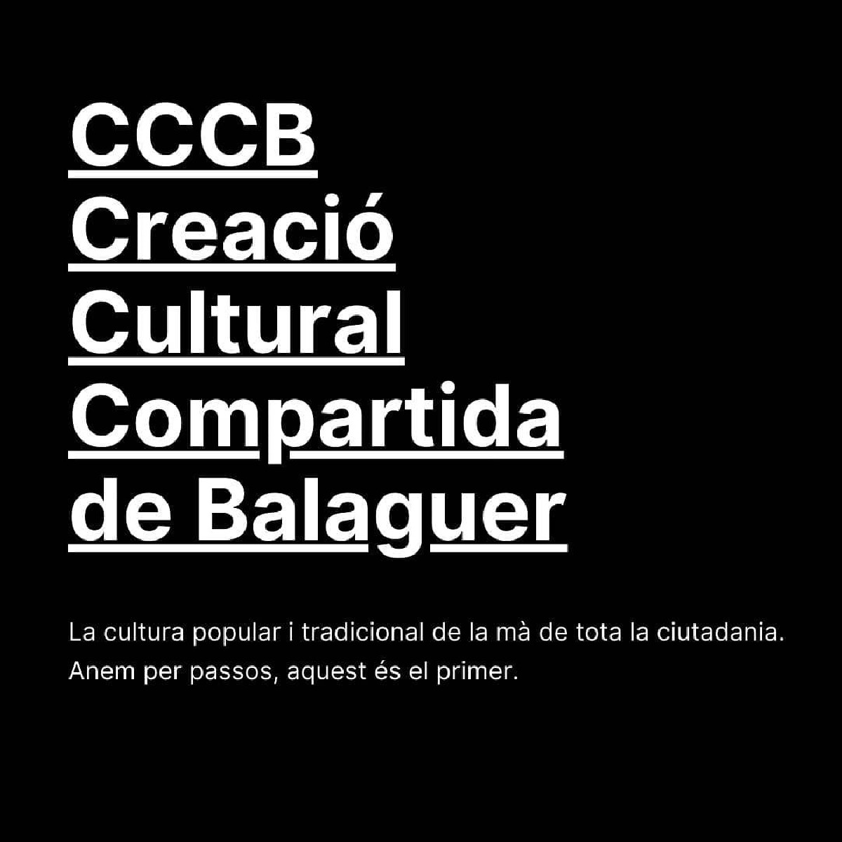 Balaguer dona el tret de sortida al CCCBalaguer, l'espai de Creació Cultural Compartida de Balaguer. Neix amb la intenció de ser un Living-Lab que creï projectes culturals per la ciutat, genuïns, i amb sentiment de pertinença entre la població