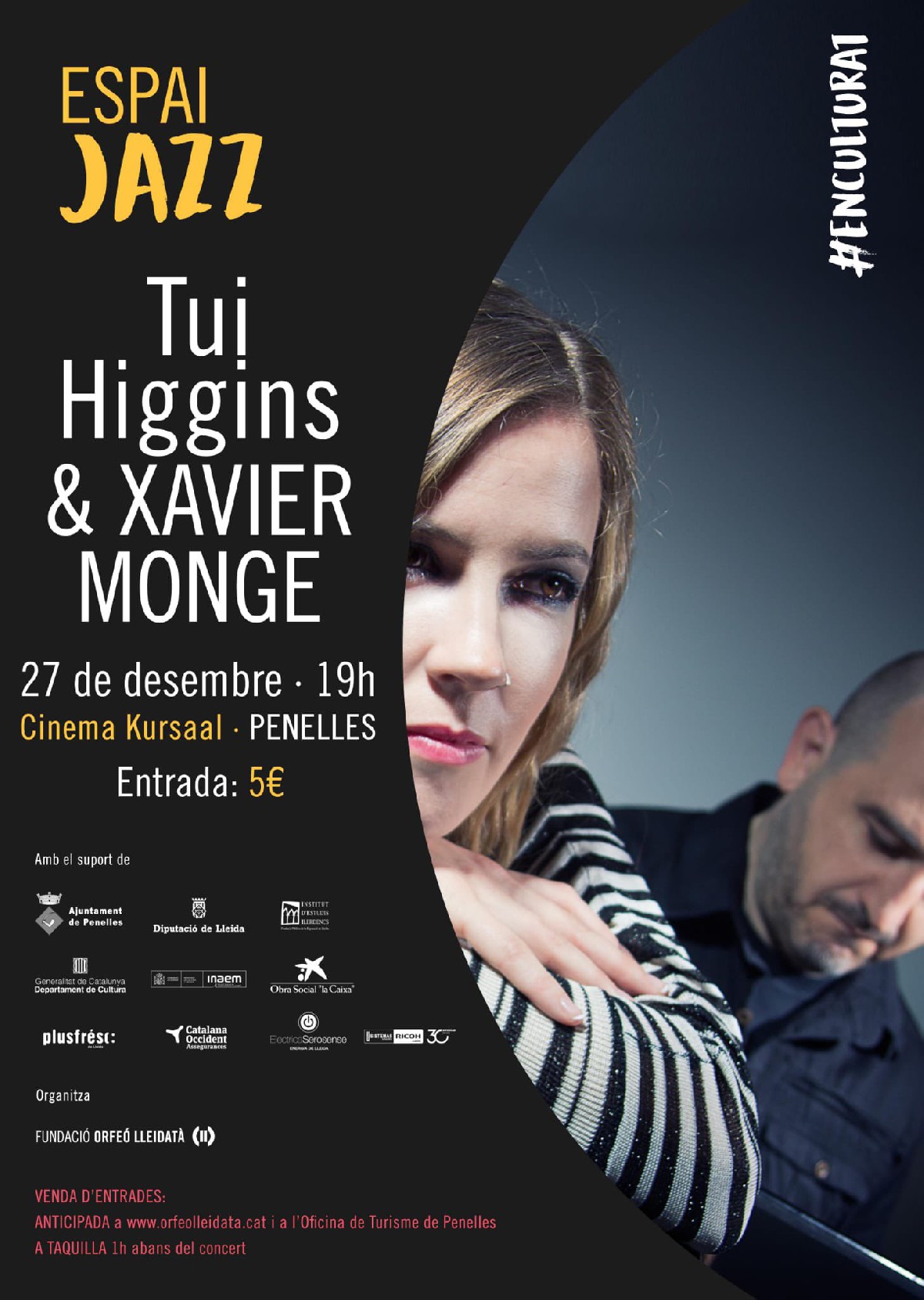 TUI HIGGINS & XAVIER MONGE JAZZ PROJECT oferiran un tribut a Harold Arlen aquest diumenge al Cinema Kursaal de Penelles. Les entrades són a la venda a orfeolleidata.cat i a l'Oficina de Turisme de Penelles