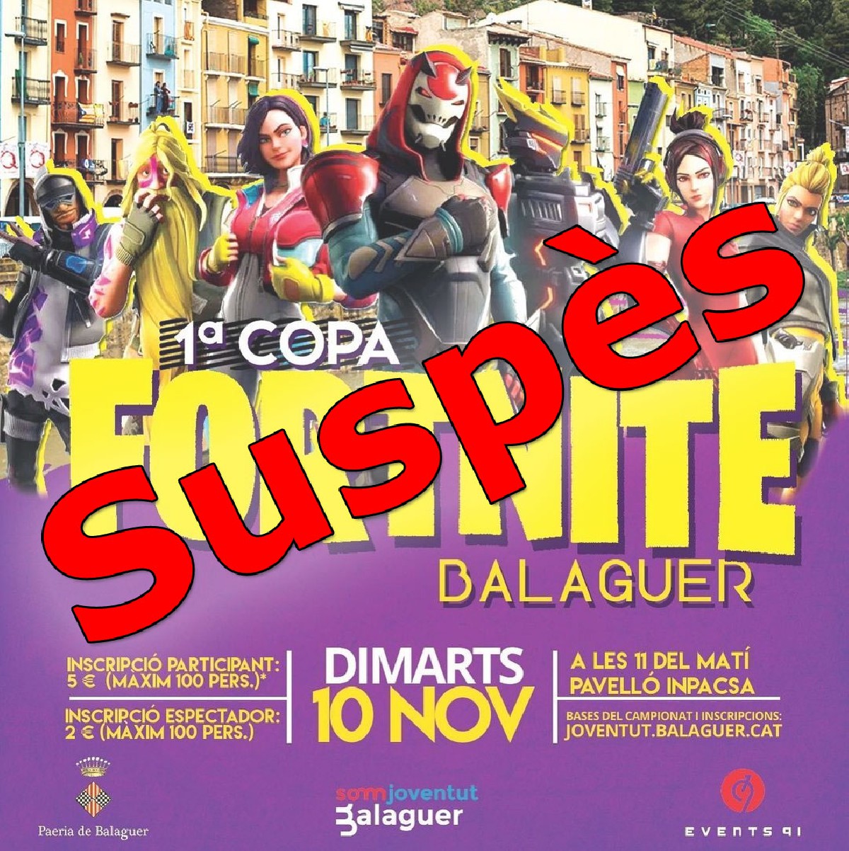 La Paeria de Balaguer suspèn la 1a Copa Fortnite de Balaguer, prevista per aquest dimecres 23 de desembre al casal Lapallavacara, per la situació actual