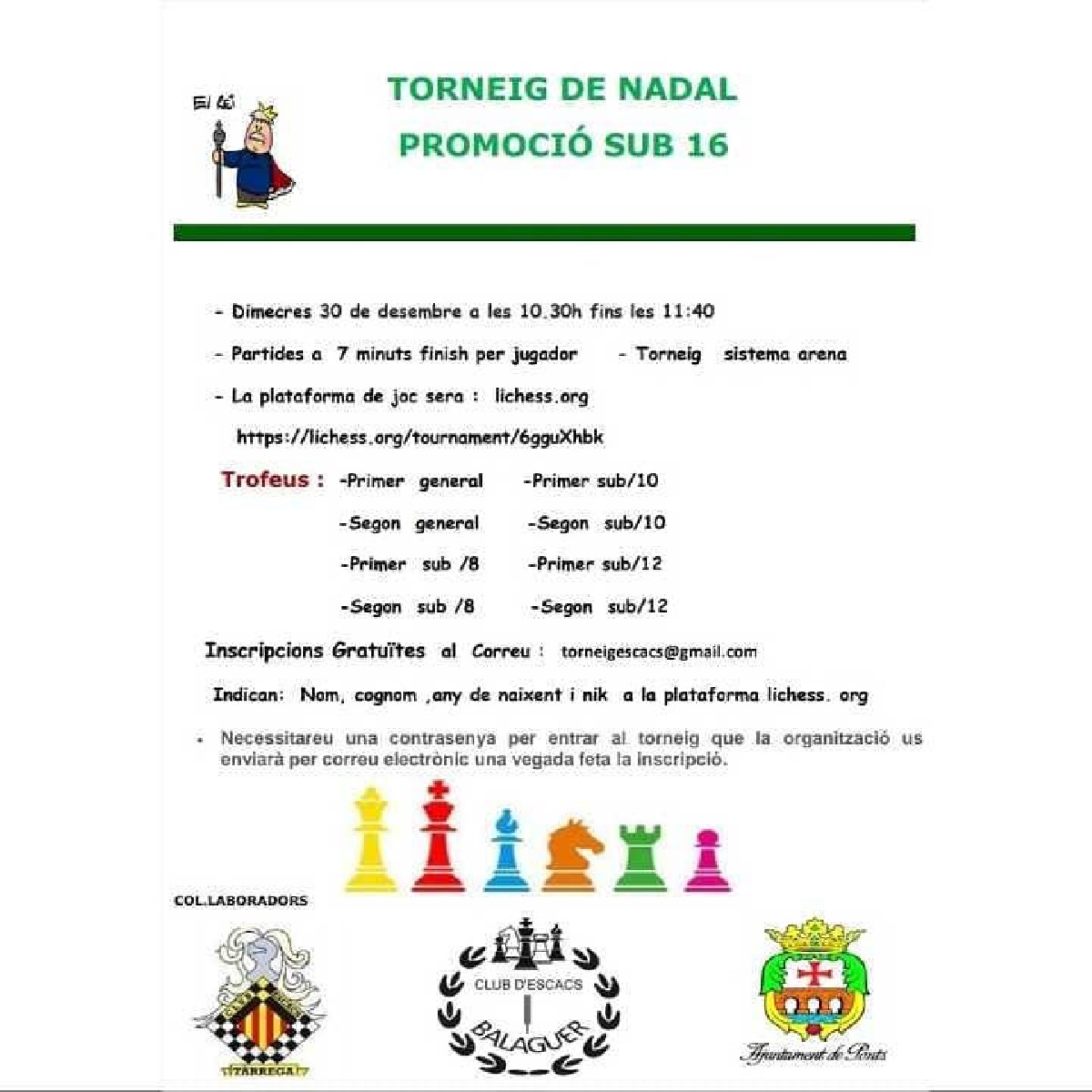 Ponts organitza el Torneig de Nadal d'Escacs, promoció Sub 16, amb la col·laboració del Club d'Escacs Balaguer i el Club d'Escacs Tàrrega. Es disputarà el dimecres 30 de desembre en format online