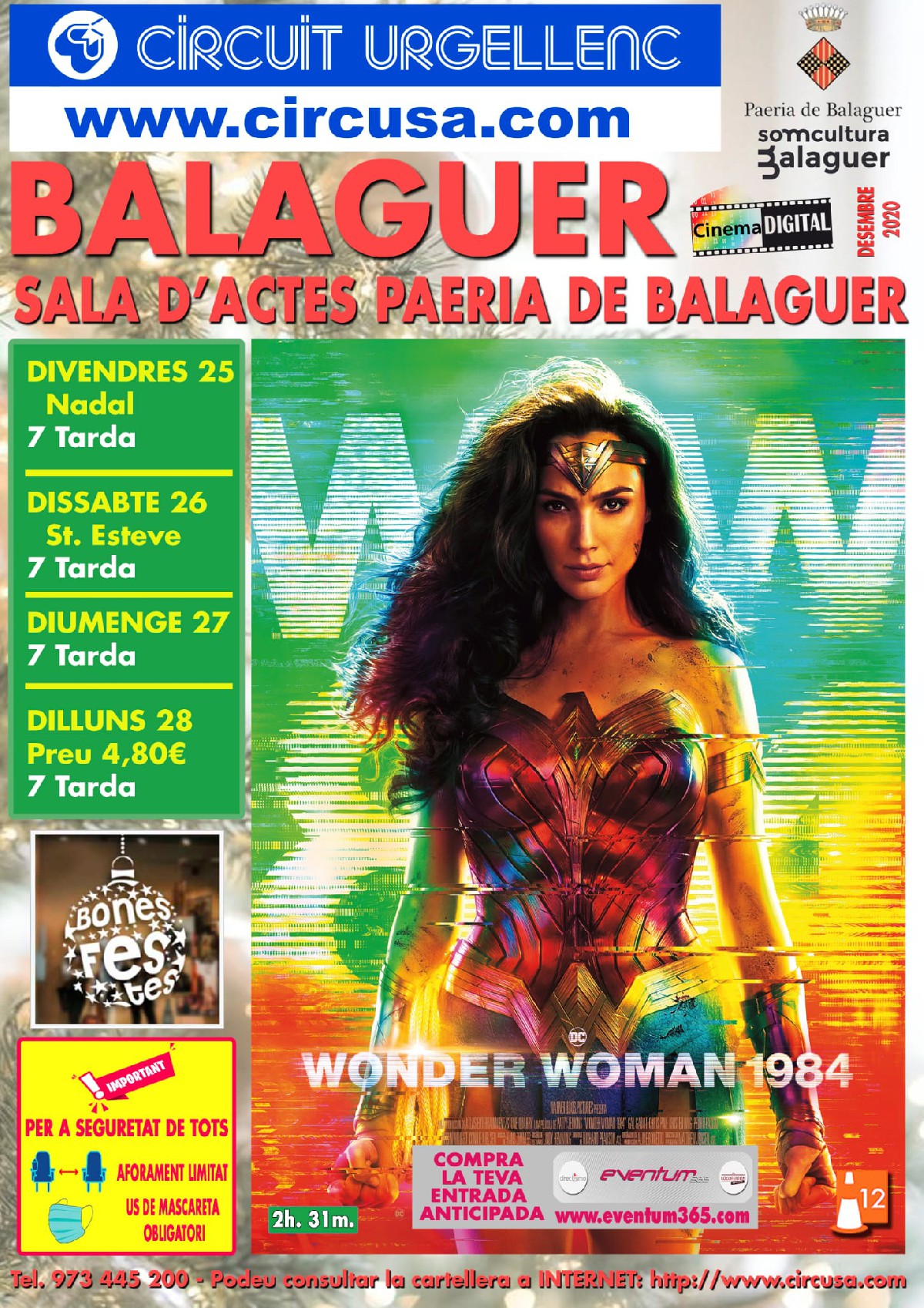 Aquest Nadal al Cinema Balaguer, Wonder Woman 19884. Es podrà veure els dies 25,26,27 i 28 de desembre a les 7 de la tarda