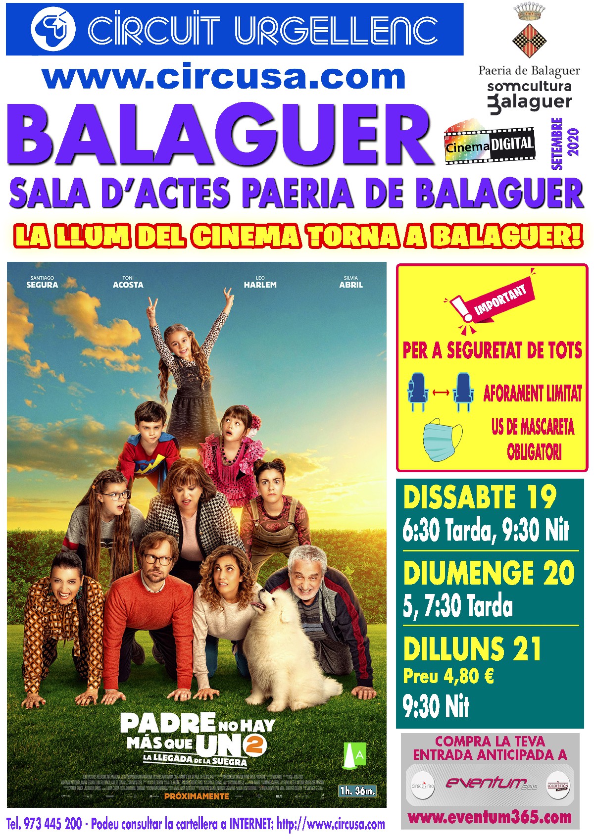 Aquest cap de setmana tornen les projeccions al cinema de Balaguer. A partir de l'octubre, la Paeria de Balaguer posarà en marxa, mitjançant APROPA CULTURA i PLATEA JOVE, un nombre d'entrades al preu reduït d'1