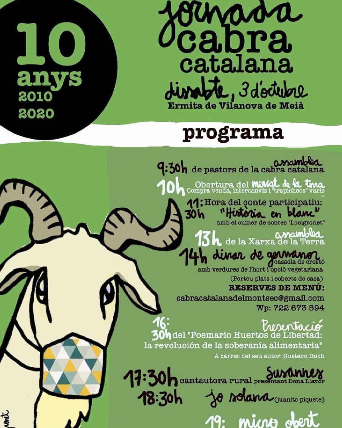 Vilanova de Meià acollirà la desena edició de la Jornada de la cabra catalana el dissabte 3 d'octubre. Inclourà assemblees, el mercat de la terra i activitats familiars com un conte i un concert.