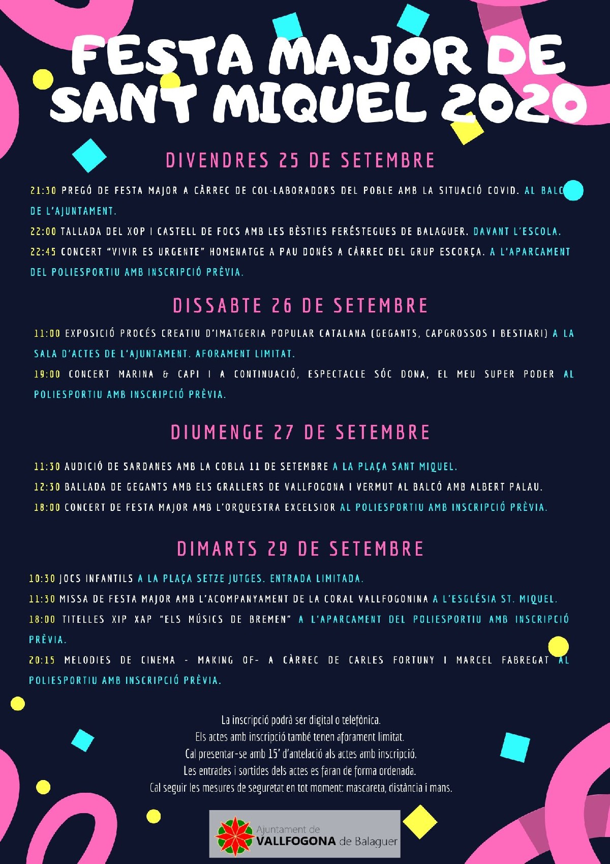 Vallfogona de Balaguer celebra aquest cap de setmana i fins dimarts la seva Festa Major dedicada a Sant Miquel. Inclou concerts i activitats familiars, a més de la tradicional tallada del xop, tot i que amb mesures de seguretat.