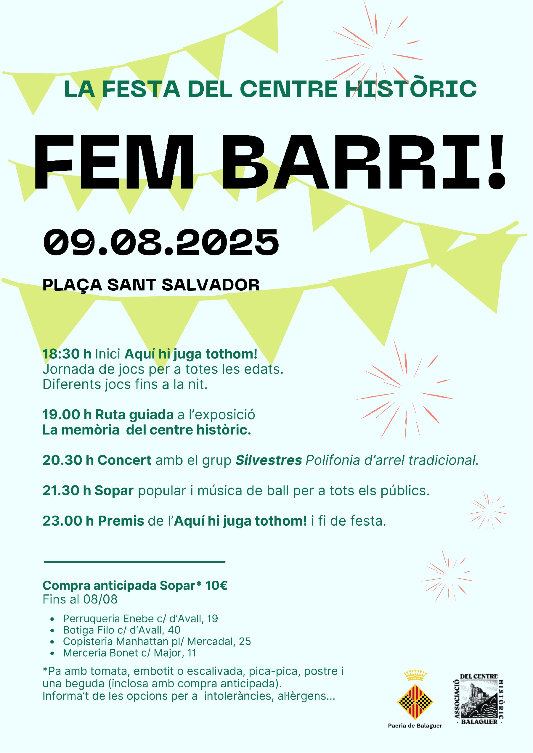 L'Associació del Veïnat del Centre Històric clourà les activitats d'estiu amb la celebració de la Festa del Centre Històric el proper dissabte, 9 d'agost, a la plaça Sant Salvador.