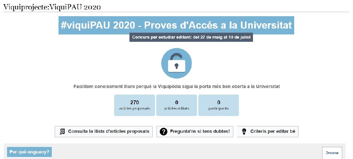 La Viquipèdia ajuda a preparar les PAU amb un concurs per estudiar editant'. Proposen 180 articles per crear i 90 per millorar sobre les matèries avaluables