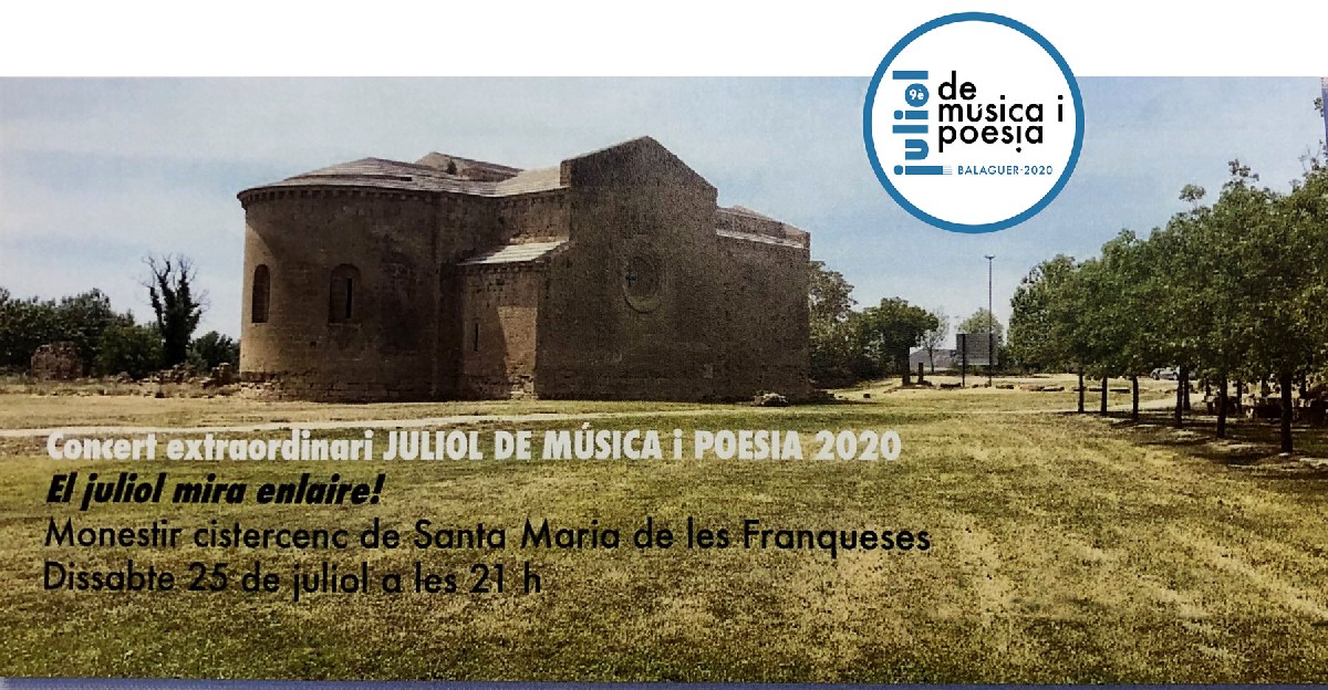 El Juliol de Música i Poesia farà un únic concert el 25 de juliol a l'exterior del monestir de Santa Maria de les Franqueses adoptant totes les mesures de seguretat. Un espectacle alegre i festiu que generi esperança i il·lusió