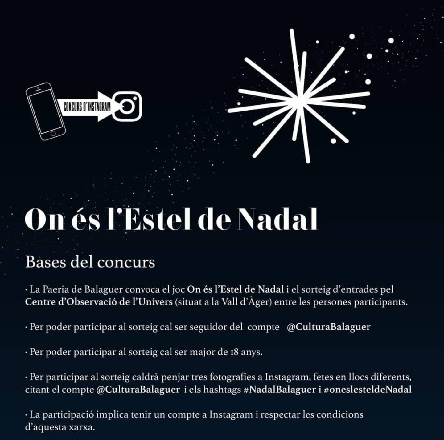 Fins aquest diumenge dia 5 continua el concurs d'instagram #oneslesteldeNadal organitzat per la Paeria de Balaguer. El premi són unes entrades pel COU.