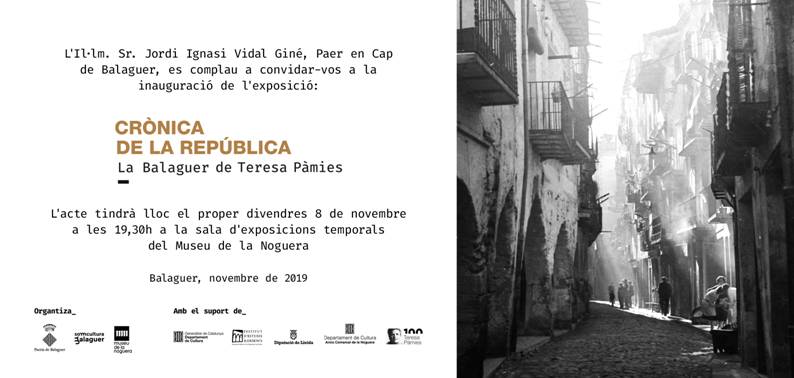 'CRÒNICA DE LA REPÚBLICA. La Balaguer de Teresa Pàmies' al Museu de la Noguera del 8 de novembre al 23 de febrer