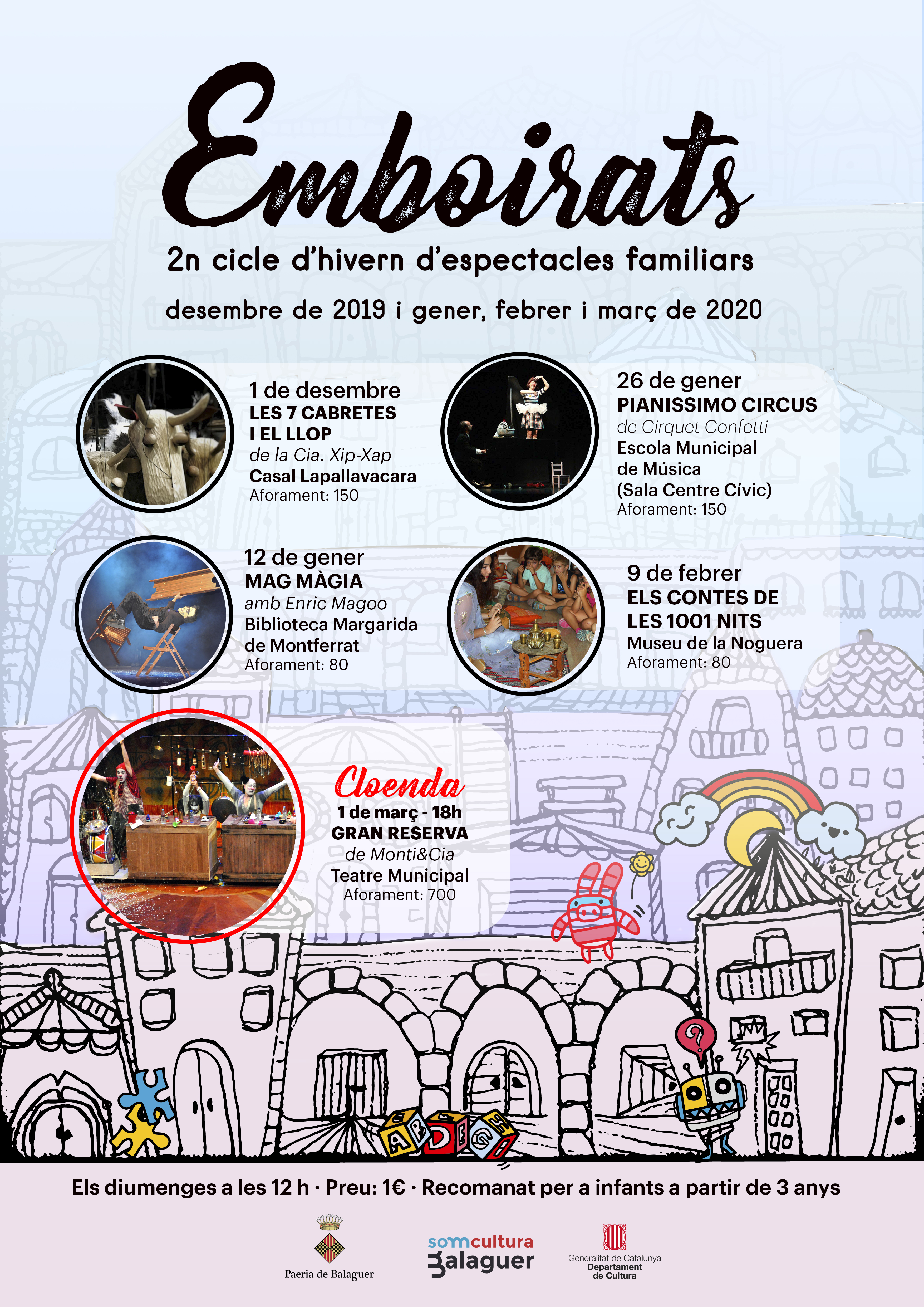 Aquest proper diumenge 1 de desembre es donarà el tret de sortida a la 2a edició dels 'Emboirats', el cicle d'hivern d'espectacles familiars de petit format, amb l'espectacle 'Les set cabretes i el llop' de la Cia Xip Xap al casal Lapallavacara