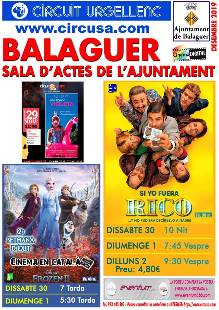 Aquest divendres al Cinema Balaguer, 'ME LLAMO VIOLETA' dins del Cicle Gaudí de Cinema Català. I per al cap de setmana la comèdia, 'SI YO FUERA RICO' I torna 'FROZZEN II', 2ona SETMANA D'ÈXIT! i en català.