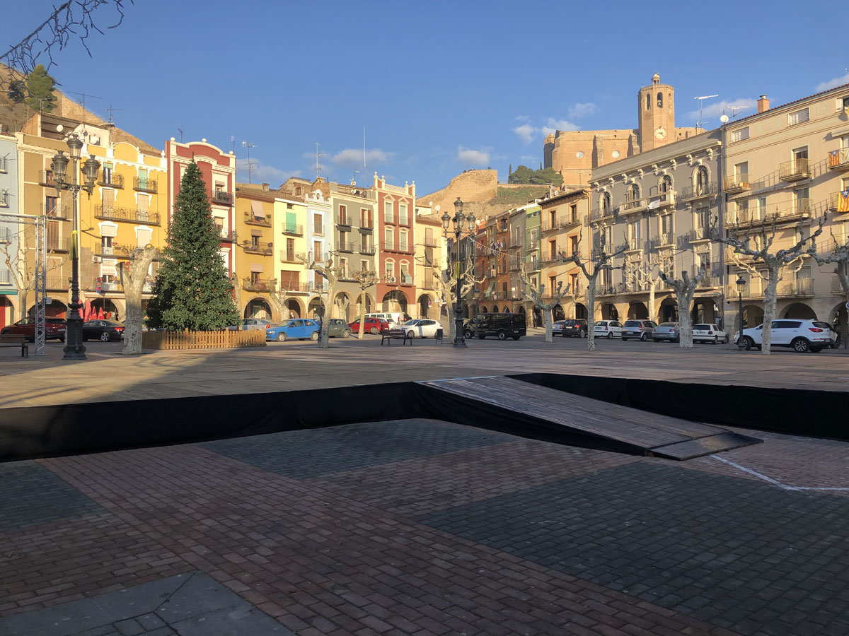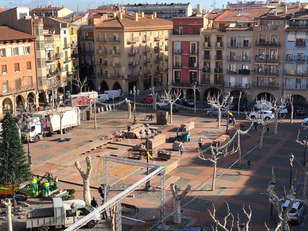 La Paeria de Balaguer comença els preparatius per tornar a instal·lar una pista de gel a la plaça del Mercadal durant les festes de Nadal. Ahir es va actuar en la part elèctrica i avui s'ha iniciat el muntatge de la tarima de fusta