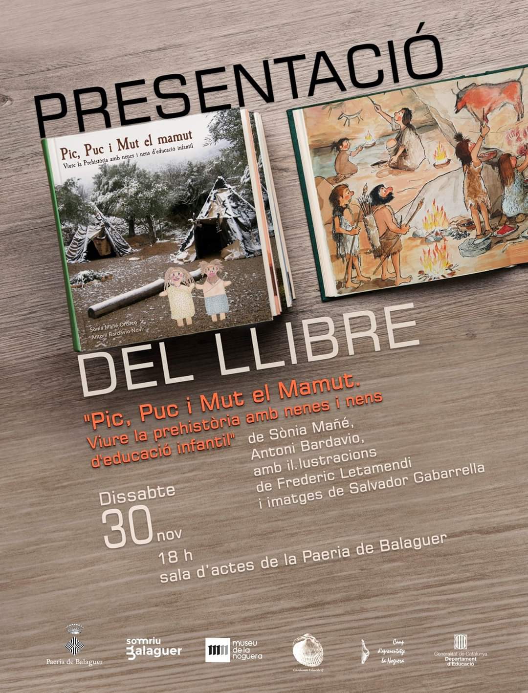 Dissabte, 30 de novembre es presentarà a les 6 de la tarda i a la Sala d'actes de l'Ajuntament de Balaguer el llibre 'PIC, PUC I MUT EL MAMUT. Viure la prehistòria amb nenes i nens d'educació infantil' A càrrec dels autors.