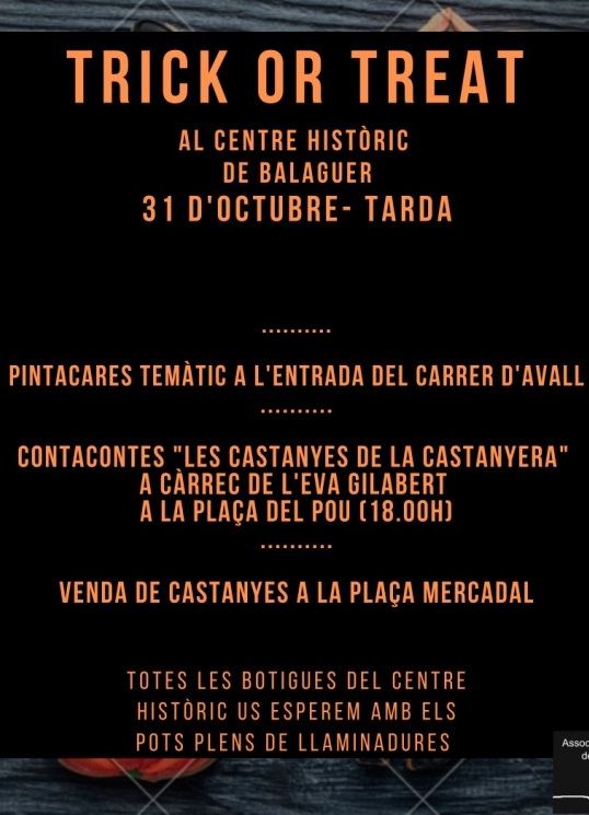 Aquest dijous dia 31 el Centre Històric de Balaguer organitza durant la tarda l'activitat Trick or Treat