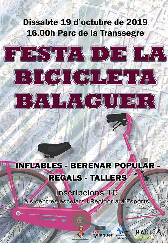 El dissabte 19 d'octubre es celebrarà una nova edició la Festa de la Bicicleta a Balaguer. Sortirà del Parc de la Transsegre i farà un recorregut apte per a totes les edats pels carrers de Balaguer.
