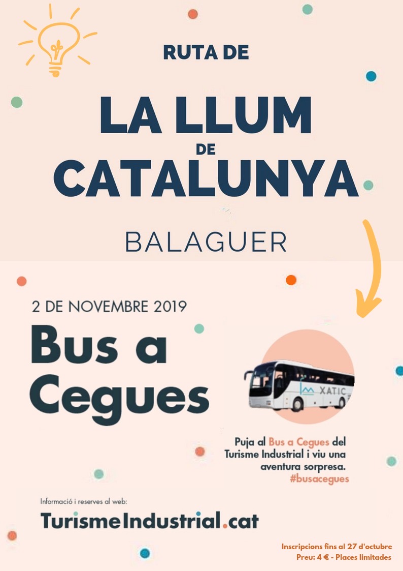 Obertes les inscripcions pel Bus a Cegues de la Setmana del Turisme Industrial. Es tracta d'un recorregut sorpresa amb activitats per diverses localitats i una de les rutes surt novament des de Balaguer, l'anomenada Ruta de la llum de Catalunya