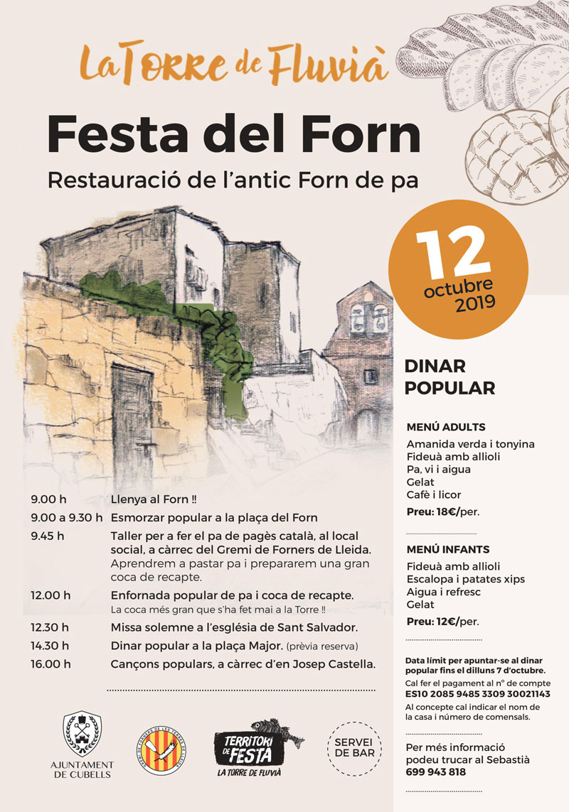 La Torre de Fluvià, poble del municipi de Cubells, recupera el seu antic forn després de 70 anys de desús. Aquest dissabte 12 d'octubre es farà una festa d'inauguració amb tallers de pa i l'elaboració de la coca més gran mai feta a la Torre.