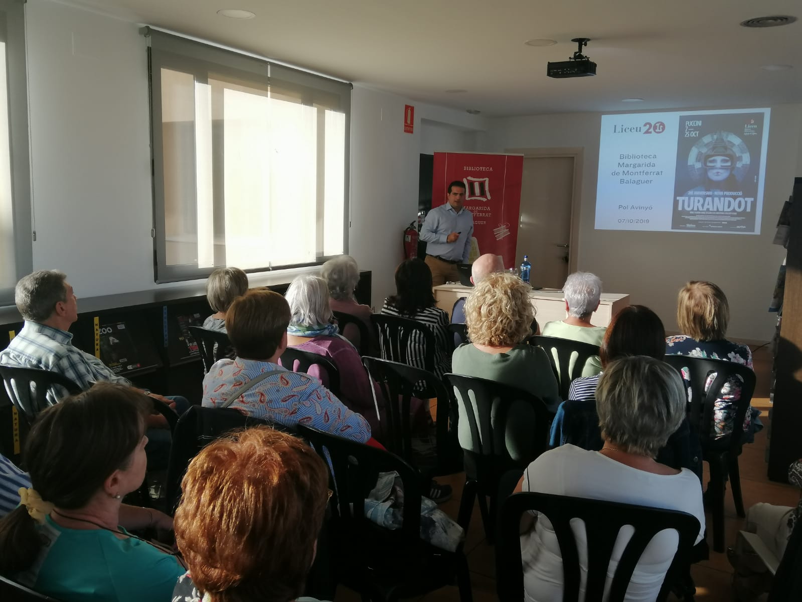 La Biblioteca Margarida de Montferrat de Balaguer va collir aquest dilluns una xerrada a càrrec de Pol Avinyo en motiu de la quarta sortida al Liceu per veure l'òpera de Giacomo Puccini, Turandot.