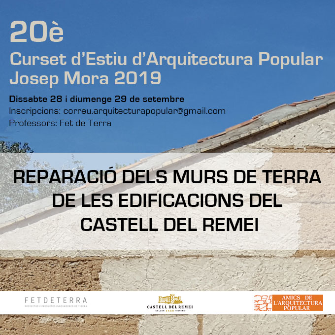 20è.Curs d'arquitectura popular Josep Mora 2019 de reparació de murs de terra d'edificacions. Dissabte 28 i diumenge al Castell del Remei.