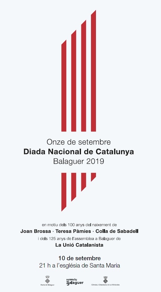 Aquest dimarts tenen lloc els actes de la Diada a Balaguer. Giraran al voltant dels 100 anys del naixements de Teresa Pàmies, Joan Brossa i la Colla de Sabadell així com dels 125 anys de l'assemblea a Balaguer de La Unió Catalanista