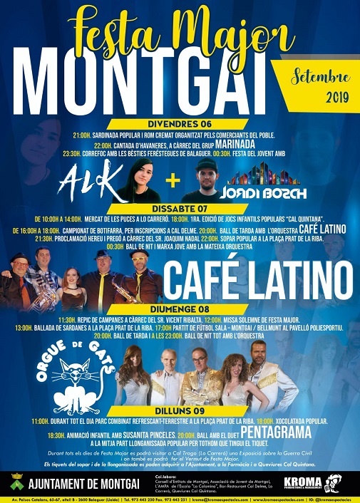 Montgai, inicia aquest divendres la seva festa Major, a les 9 del vespre, amb una sardinada popular i rom cremat organitzada pel comerç del poble. És un dels actes destacats, juntament amb el mercat de les puces, amb un concert vermut.