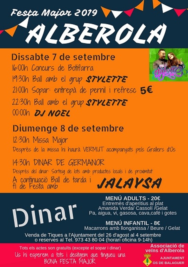 Alberola celebra aquest cap de setmana la seva Festa Major amb balls de tarda i nit dissabte i un dinar de germanor i ball de tarda diumenge com a actes més concorreguts.