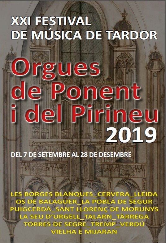 El XXI Festival de Música de Tardor ORGUES DE PONENT I DEL PIRINEU farà parada al monestir de Santa Maria de Bellpuig de les Avellanes el 13 d'octubre amb orgue a quatre mans a càrrec de Carme Godall i Guido Iotti