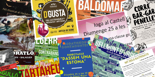 Cap de setmana amb concerts a l'aire lliure a Balaguer i comarca, amb festes majors a Bellmunt d'Urgell, Algerri, Tartareu, Baldomar i Agulló i amb la Fira d'Artesa com a activitats destacades.