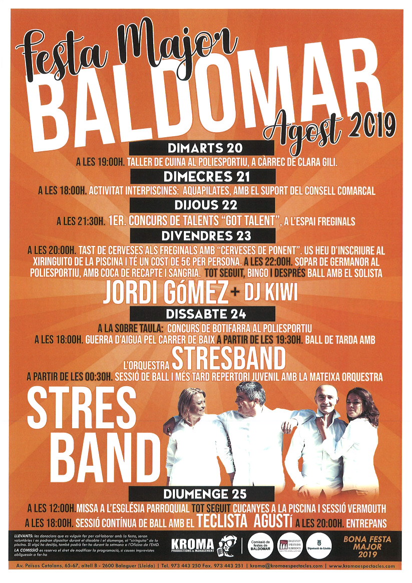 Aquest cap de setmana el nucli de Baldomar, entitat d'Artesa de Segre celebra la seva Festa Major amb ball i gresca i una guerra d'aigua dissabte a la tarda.