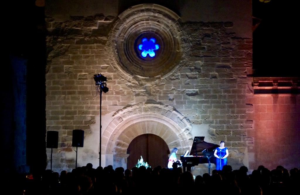 Ple absolut al concert de Música als Castells de Balaguer, que aquest dissabte han ofert la pianista Matra Mesalles i la soprano Eva Ruiz davant de la façana romànica de la Basílica del Sant Crist.