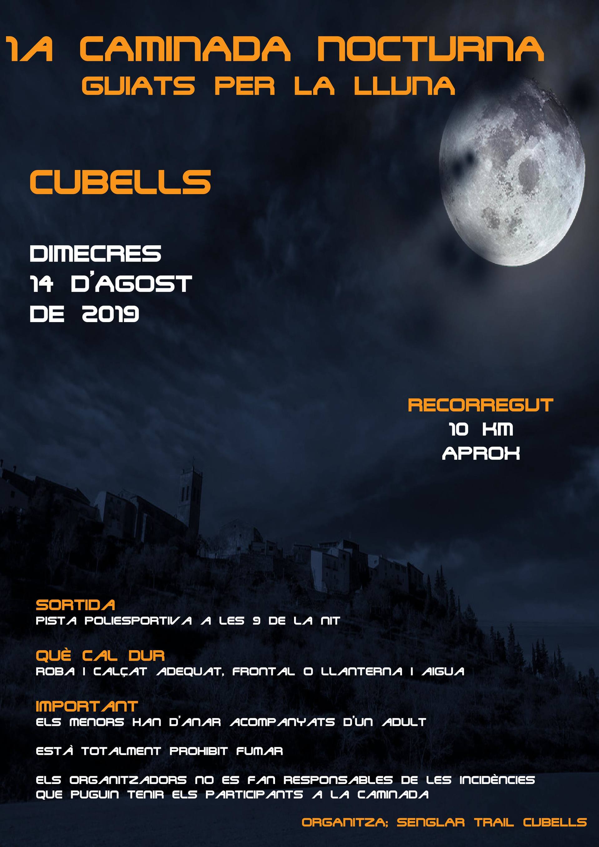 Cubells organitza aquest dimecres la primera caminada nocturna sota la llum de la lluna. Una iniciativa de la Senglar Trail que recórrera els carrers del municipi i del seu entorn guiats només per la llum de la lluna.