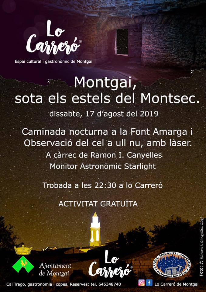 Lo Carreró de Montgai organitza aquest dissabte una caminada nocturna sota la llum de les estrelles
