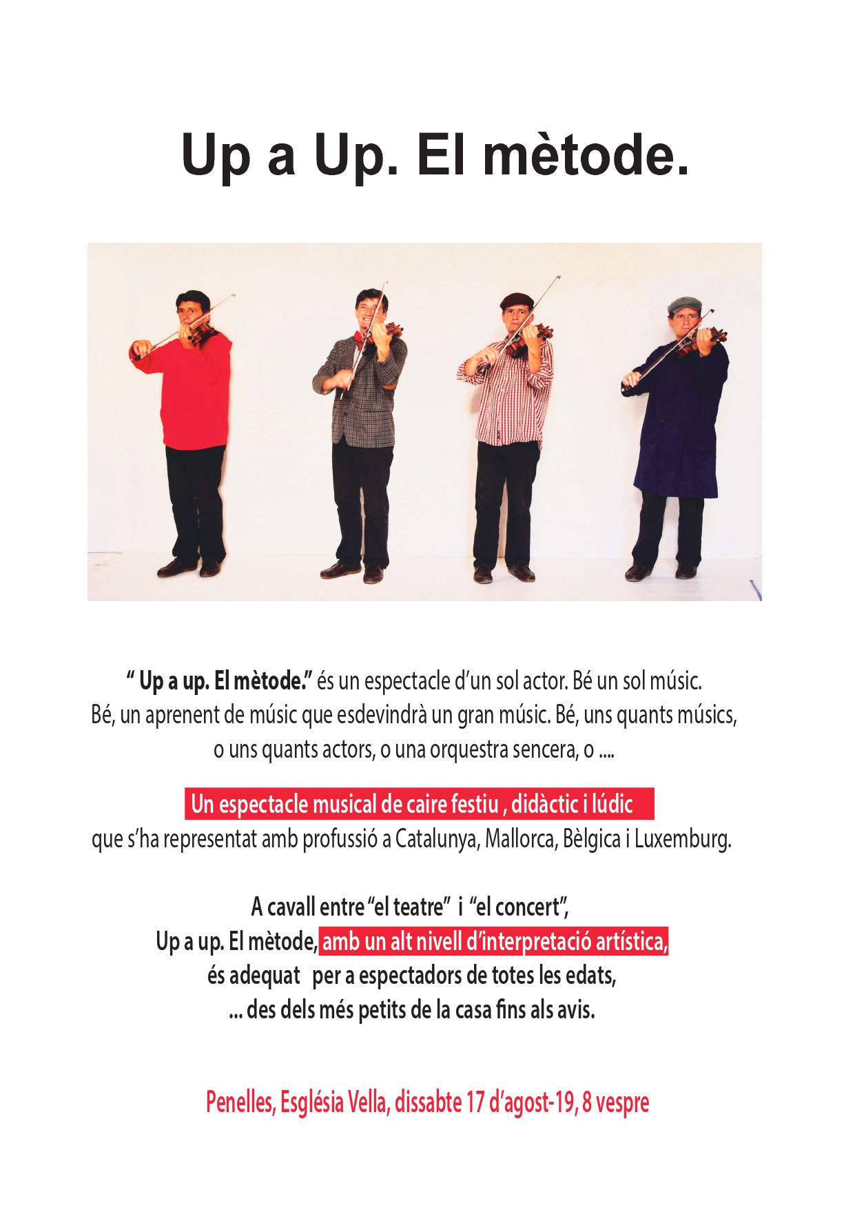 La Coral Sant Joan de Penelles organitza la representació del Concert - espectacle 'UP A UP. El mètode' aquest dissabte a l'Església Vella de Penelles