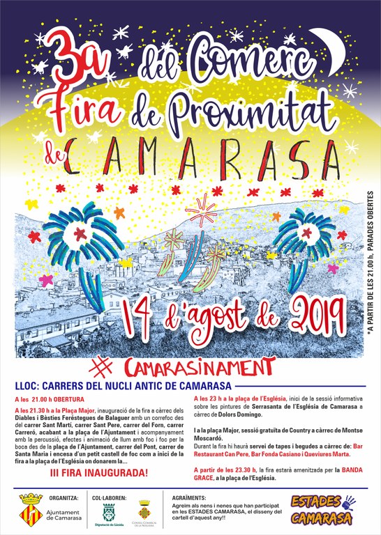 Camarasa celebrarà aquest dimecres la 3a Fira de Comerç de Proximitat. A més d'una vintena de parades, la fira inclourà un correfoc, una sessió informativa sobre les pintures de Serrasanta, música i degustacions