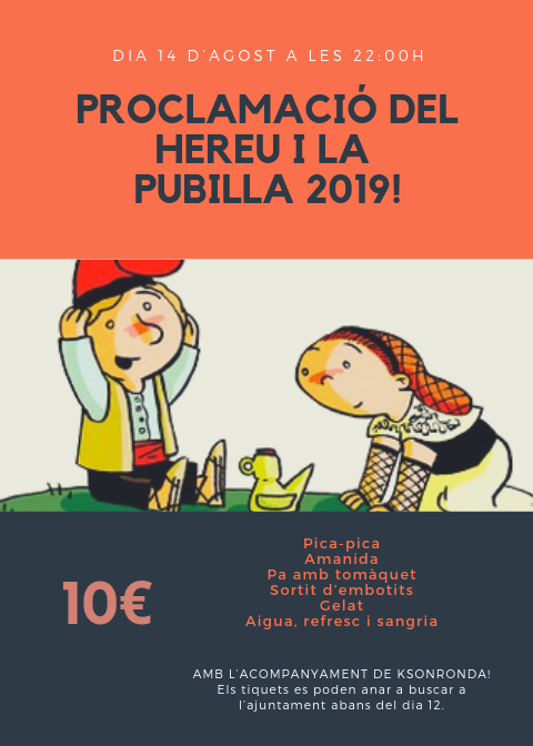 Aquest dimecres el municipi de Penelles celebrarà l'acte de proclamació de l'hereu i la pubilla organitzat per l'Associació de Joves de Penelles. Tindrà lloc un sopar popular i un concert del grup Kasonronda