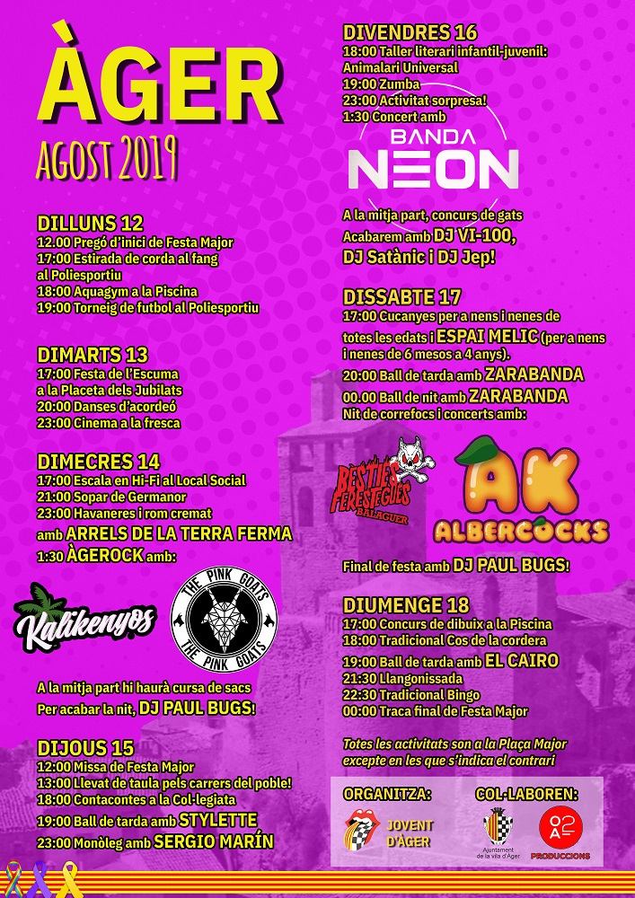 Aquest dilluns comencen els actes Festa Major a Àger. Aquest dilluns al matí el prego de Festa Major ha donat inici als actes que s'allargaran fins diumenge amb diferents concerts i activitats.