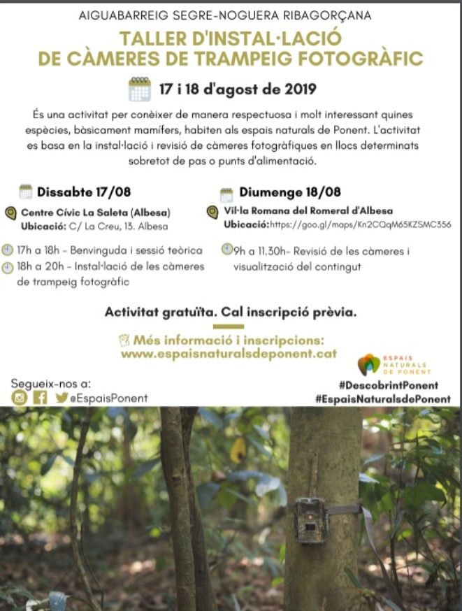 El proper cap de setmana, dies 17 i 18 d'agost, es farà a Albesa un 'Taller d'instal.lació de càmeres de trampeig fotogràfic' a l'espai natural de l'Aiguabarreig Segre-Noguera Ribagorçana.