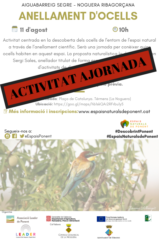 AJORNAMENT ACTIVITAT 'ANELLAMENT D'OCELLS? A TÉRMENS PREVIST PER AQUEST DIUMENGE