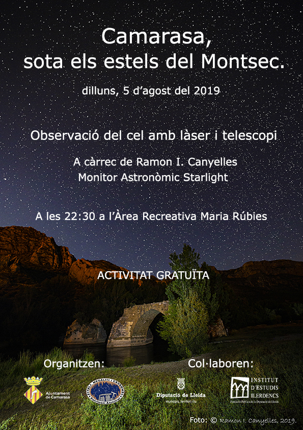 Aquest dilluns el municipi de Camarasa organitza , Camarasa sota els estels del Montsec. Gerb també Organitza un caminada sota la Llum de la Lluna per aquest dimarts.
