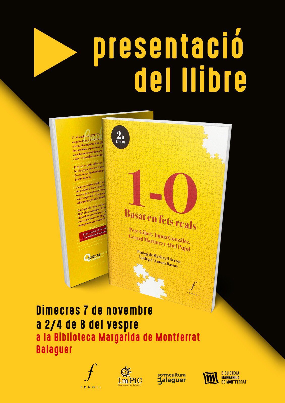 Aquest dimecres 7 de novembre a 2/4 de 8 del vespre, la Biblioteca acull la presentació del llibre '1-O. Basat en fets reals'
