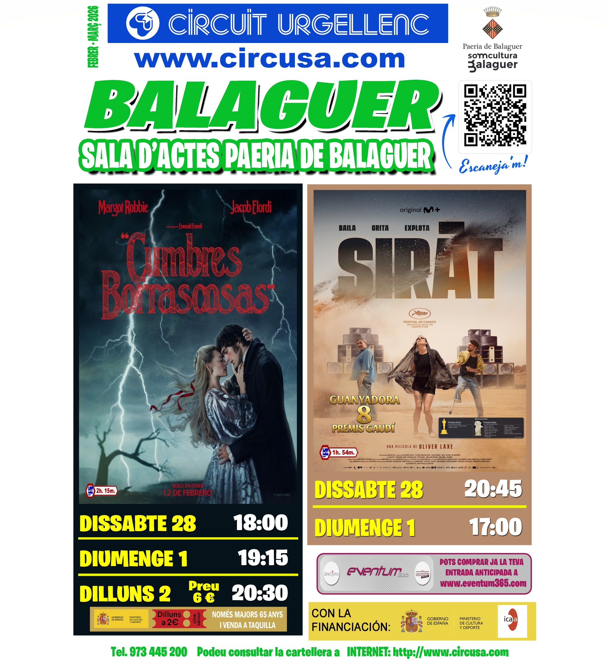 Aquest cap de setmana al Cinema Balaguer es podran veure les pel·lícules: SIRAT i CUMBRES BORRASCOSAS