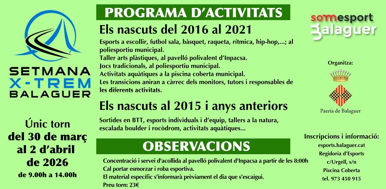 La Paeria de Balaguer organitza una nova edició de la Setmana X-Trem per a infants i joves