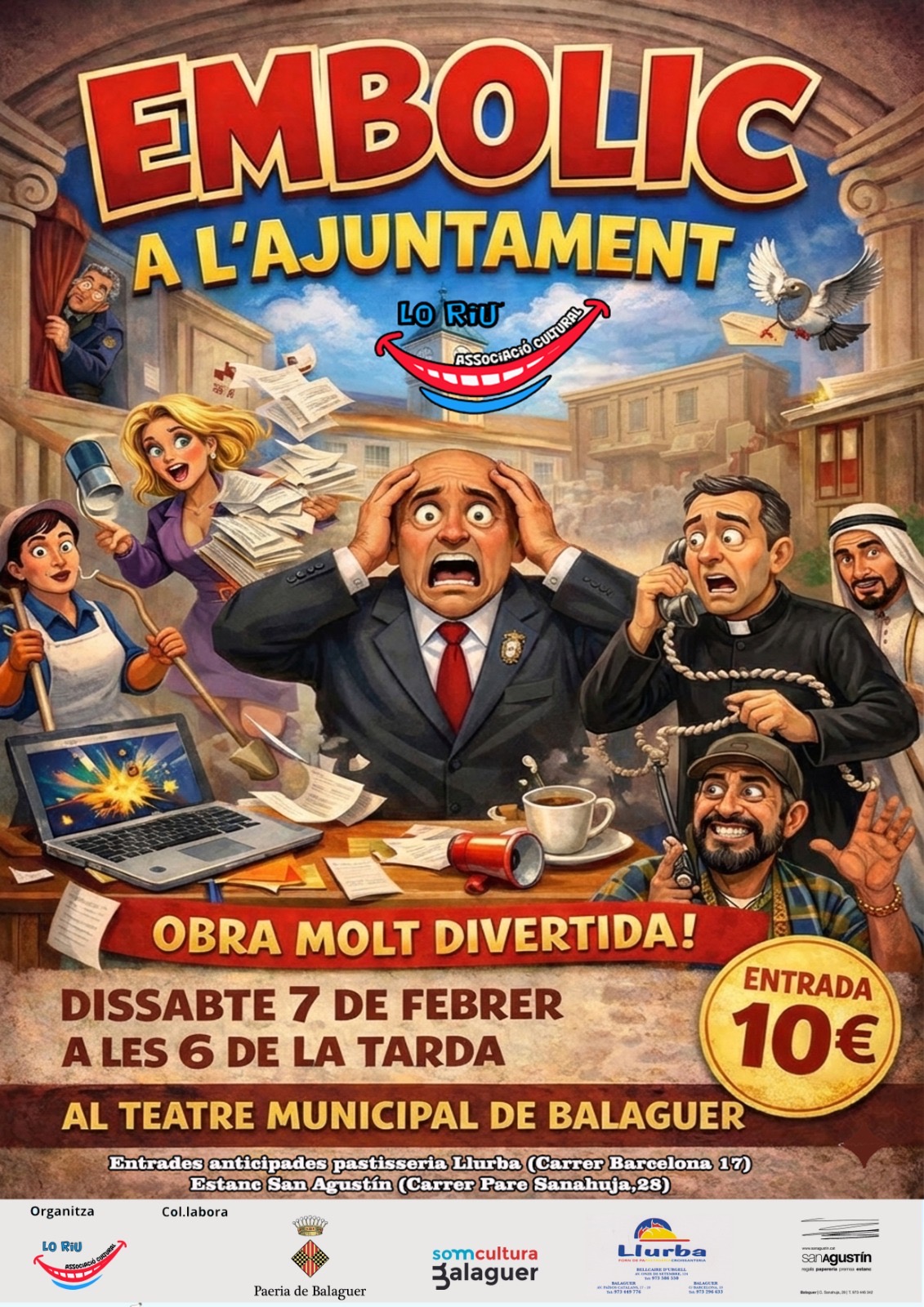 L'Associació Cultural Lo Riu torna a representar l’obra de teatre ‘Embolic a l'ajuntament’ el proper dissabte dia 7 de febrer a les 18h al Teatre Municipal de Balaguer
