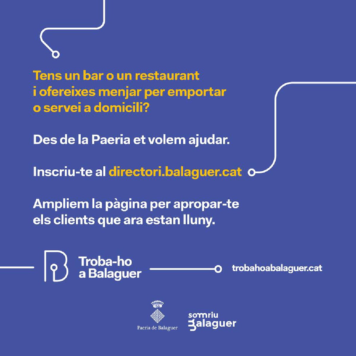 La Paeria de Balaguer publicitarà els bars i restaurants de la ciutat que ofereixin menjars per emportar o servei a domicili
