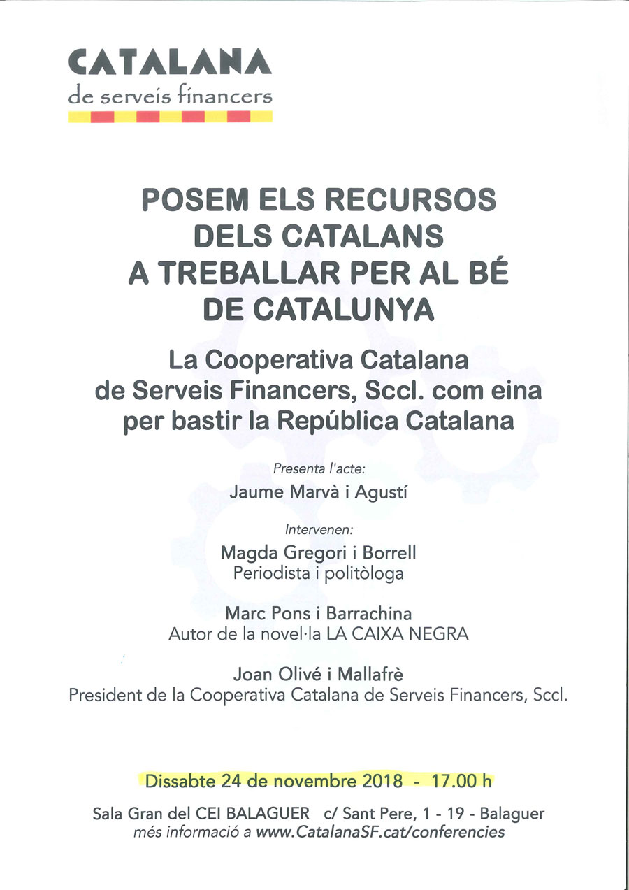 Demà dissabte 24 de novembre es presentarà al CEI de Balaguer la Cooperativa Catalana de Serveis Financers