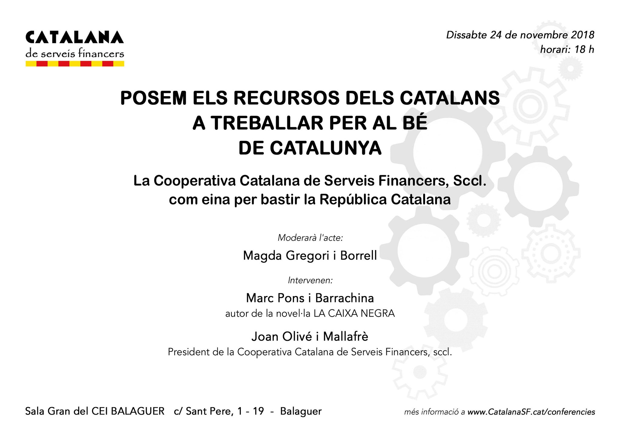 El dissabte 24 de novembre es presentarà al CEI de Balaguer la Cooperativa Catalana de Serveis Financers