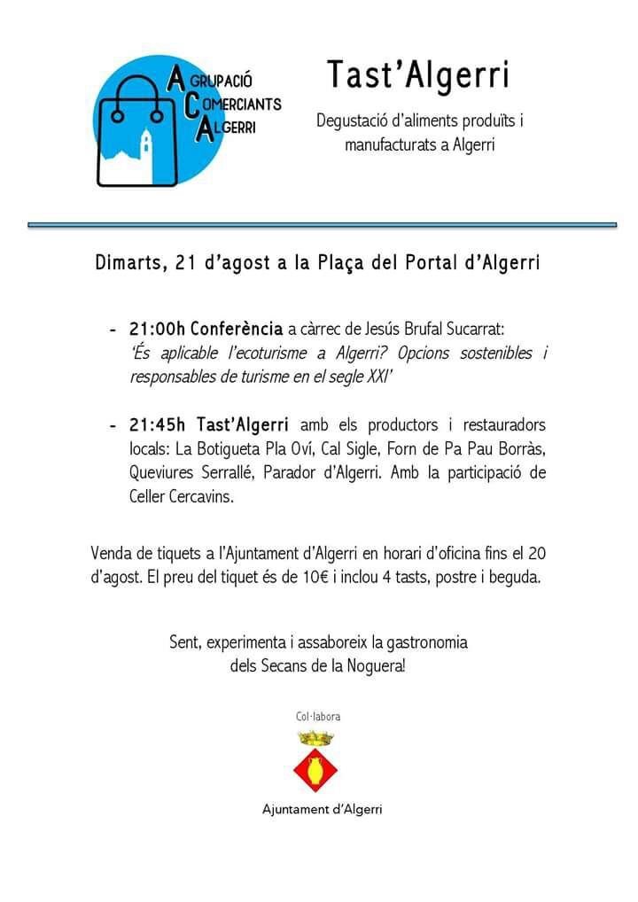 L'Agrupació de Comerciants d'Algerri ha organitzat per demà l'activitat 'Tast d'Algerri' amb l'objectiu de degustar aliments produïts i manufacturats en aquest municipi
