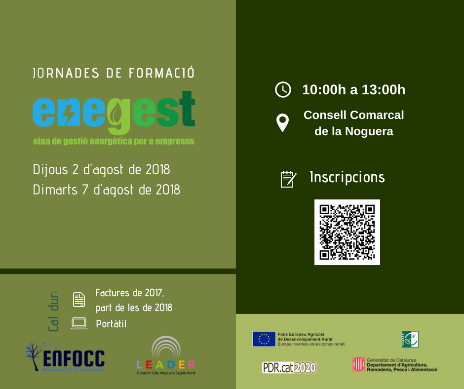 El GAL Noguera Segrià Nord ofereix als sol·licitants d'ajuts Leader el programa ENEGES, que es presentarà en dues jornades formatives aquest dijous i el proper dimarts